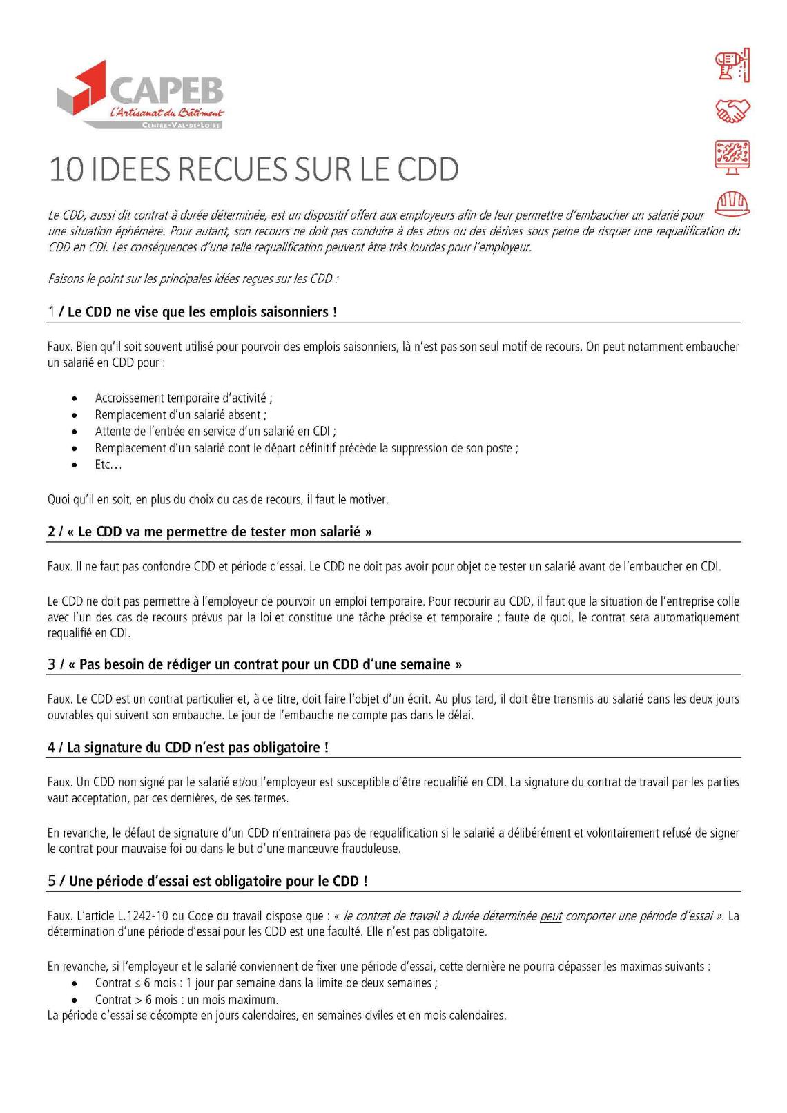 10 IDEES RECUES SUR LE CDD