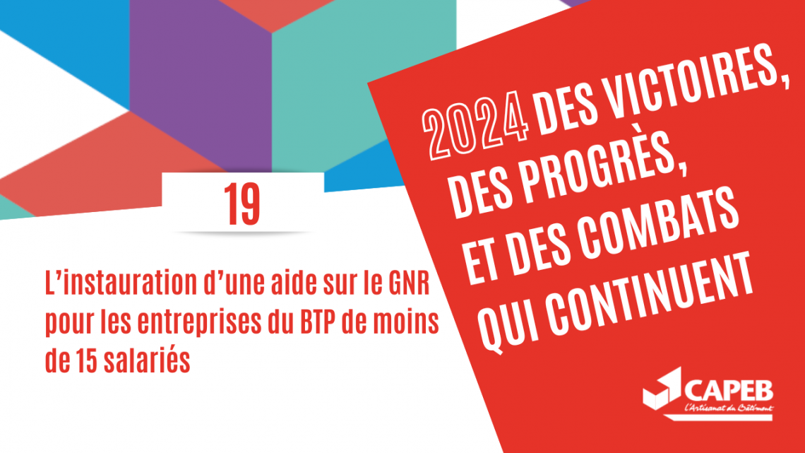 Rendez-vous le 19/12 - 19. L’instauration d’une aide sur le GNR pour les entreprises du BTP de moins de 15 salariés
