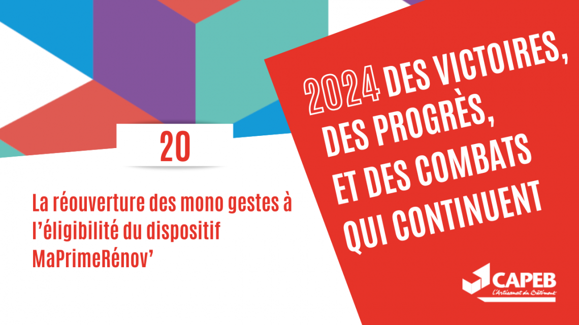Du 1er au 24 décembre, chaque élu du Conseil d’administration de la CAPEB reviendra en détail sur les victoires, les avancées et les combats menés et leurs impacts sur le quotidien des artisans.