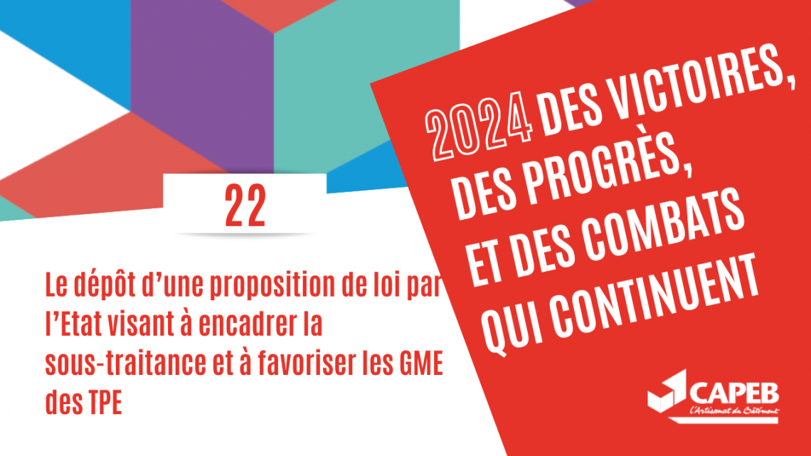 Rendez-vous le 22/12 - 22. Le dépôt d’une proposition de loi par l’Etat visant à encadrer la sous-traitance et à favoriser les GME des TPE