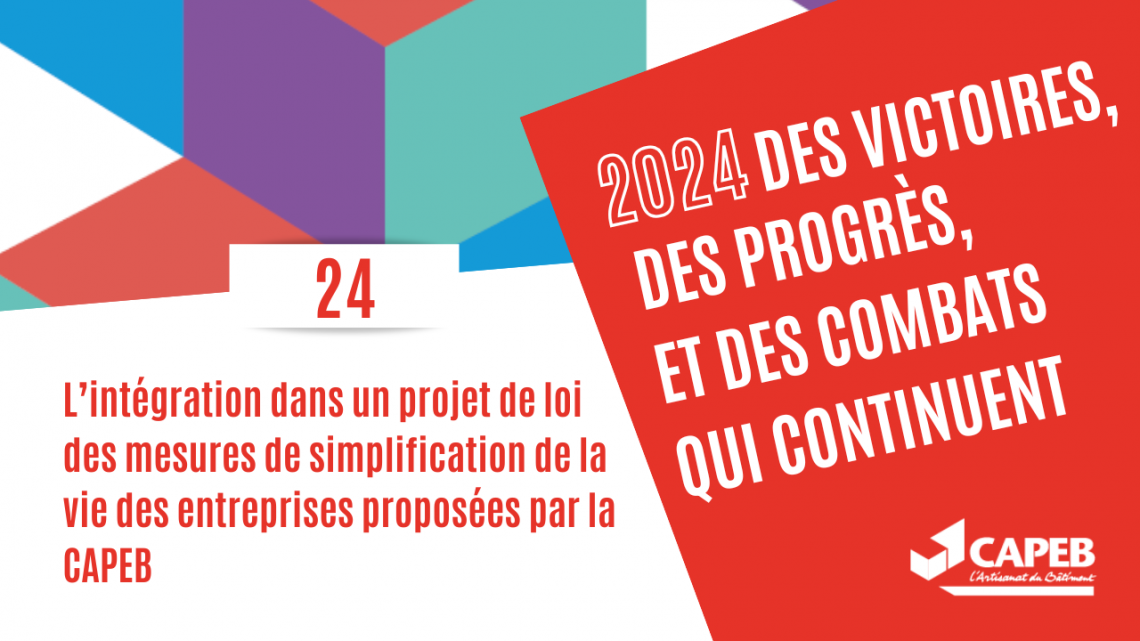 Rendez-vous le 24/12 - 24. L’intégration dans un projet de loi des mesures de simplification de la vie des entreprises proposées par la CAPEB