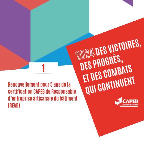 L’utilité de la CAPEB ainsi que la force d’un collectif de 62 000 artisans du bâtiment adhérents ont encore pu être démontrées en 2024 au profit de toutes les entreprises artisanales du bâtiment.