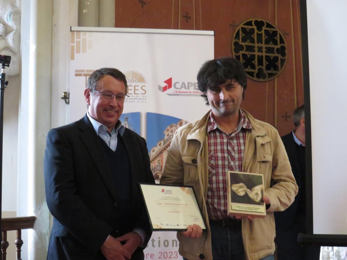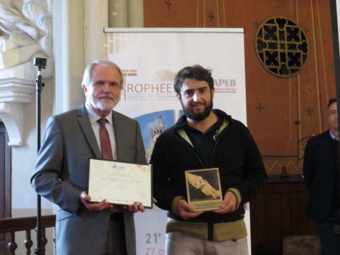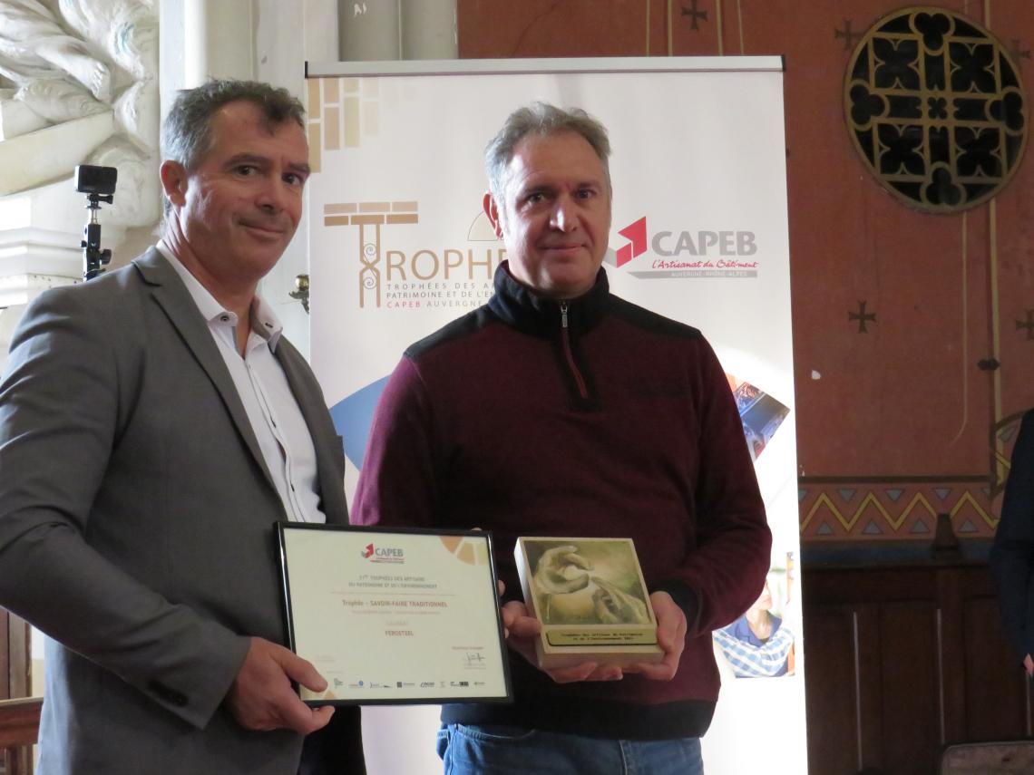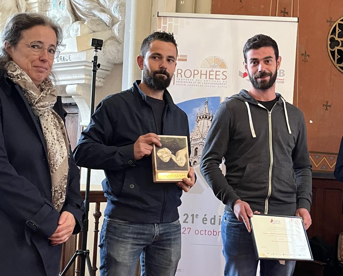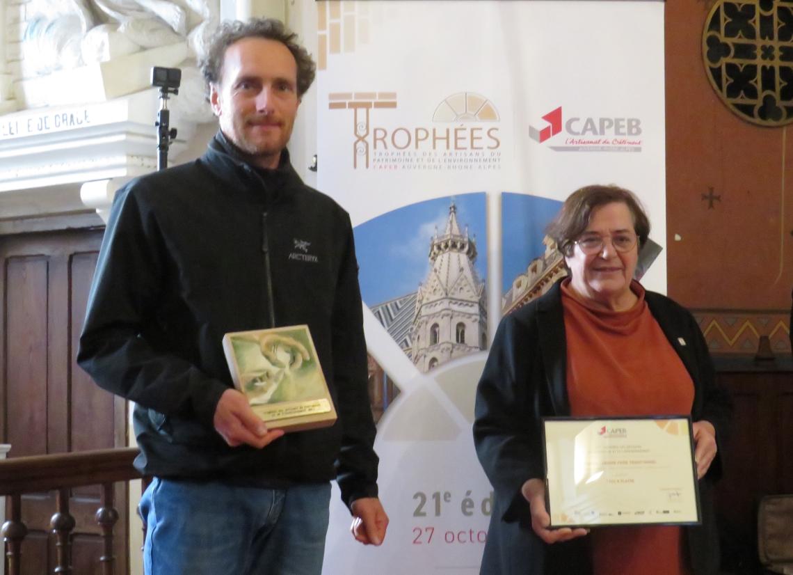 Trophée remis par Laurent Marmonier – Président de la Commission Patrimoine & Transitions de la CAPEB Auvergne-Rhône-Alpes