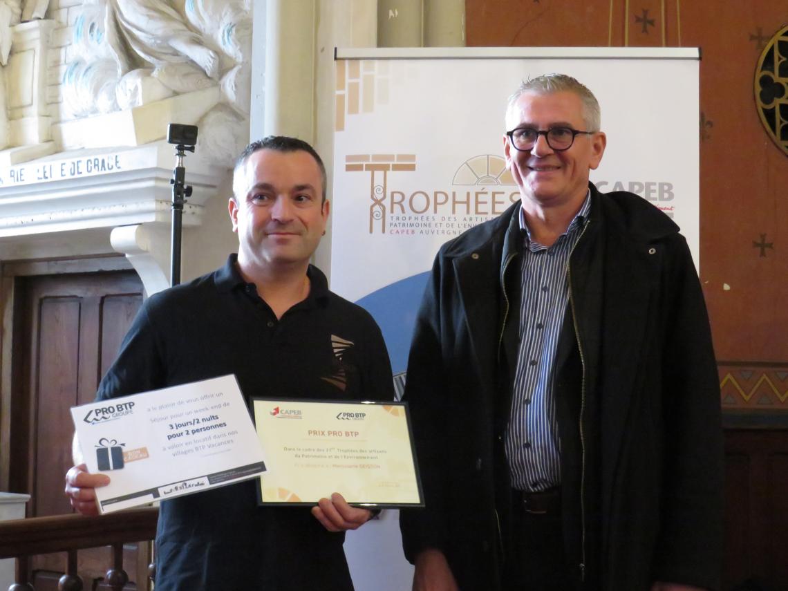 Trophée remis par Benoît Gauthier – Président de la CAPEB Ardèche