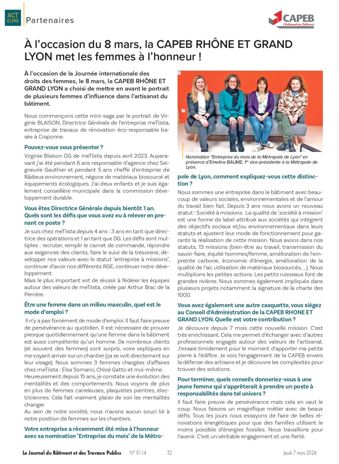 2024-03-07 00:00:00 À l’occasion du 8 mars, la CAPEB RHÔNE ET GRAND LYON met les femmes à l’honneur !
