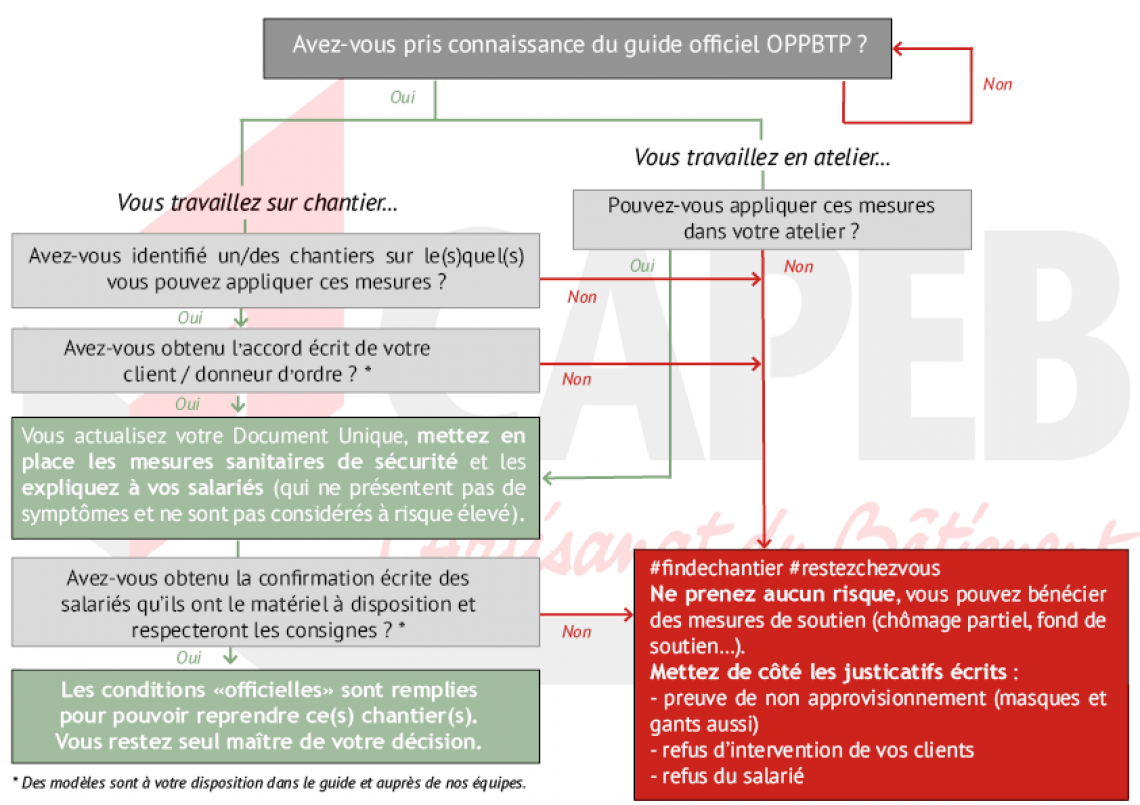Reprise ou non des chantiers et GUIDE de Préconisations de Sécurité Sanitaire pour le BTP