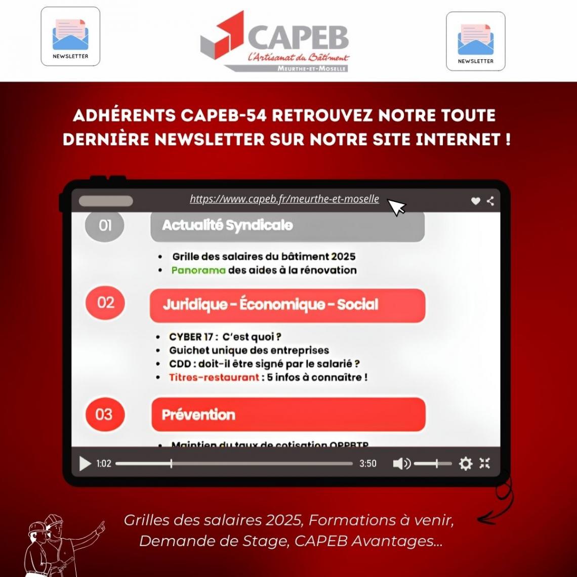 Adhérents CAPEB-54 : Découvrez notre toute dernière newsletter !