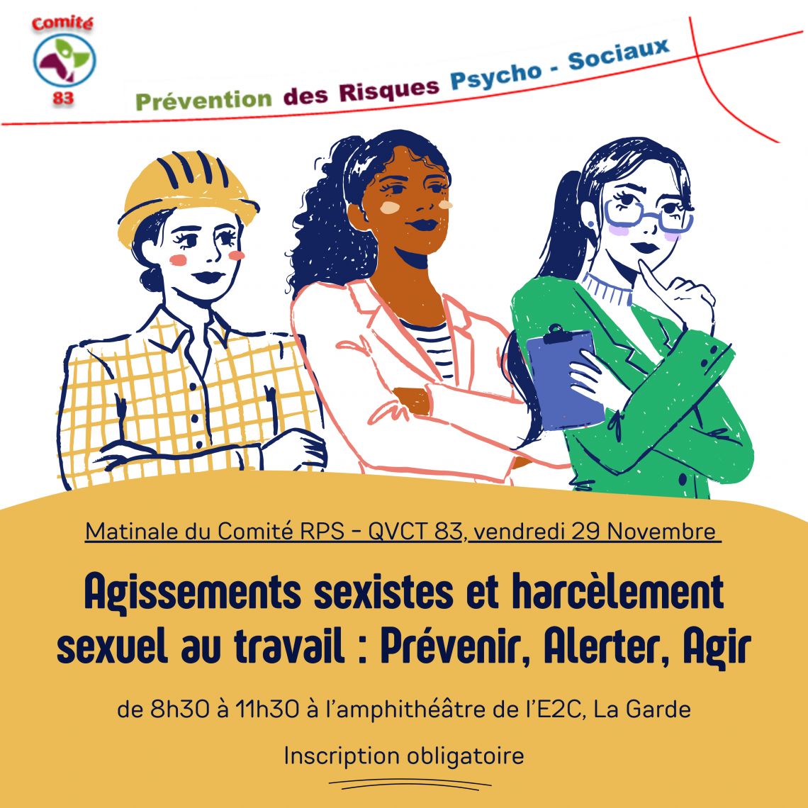 Matinale du Comité RPS - QVT 83, vendredi 29 Novembre 8h30 : Agissements sexistes et harcèlement sexuel au travail : prévenir, alerter, agir