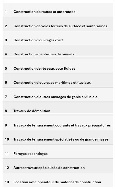 (1) Liste des entreprises concernées : activité dans l’un des 13 secteurs visés dans la liste annexée au décret (le secteur 9 concernera la majorité de nos entreprises) :