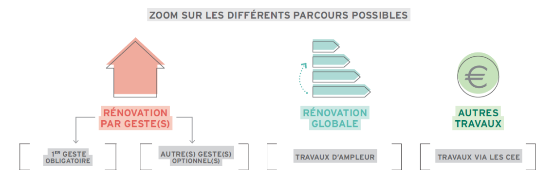 Présentation des trois parcours d’aides en lien avec les travaux de rénovation énergétique :