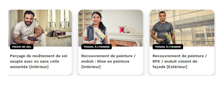 Vous y retrouverez trente situations de travailles plus courantes identifiées dans les interventions d’entretien et de maintenance en SS4, en se concentrant sur sept métiers du bâtiment : les couvreurs, les peintres, les soliers, les façadiers, les plâtriers, les maçons et les carreleurs.