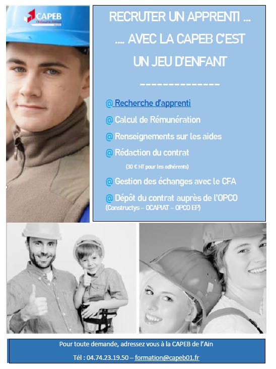 VOUS SOUHAITEZ EMBAUCHER UN APPRENTI - La CAPEB vous fait gagner du temps