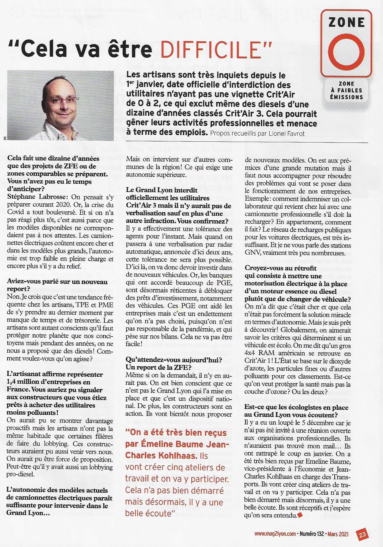 Article de presse au sujet de la ZFE "Cela va être difficile"