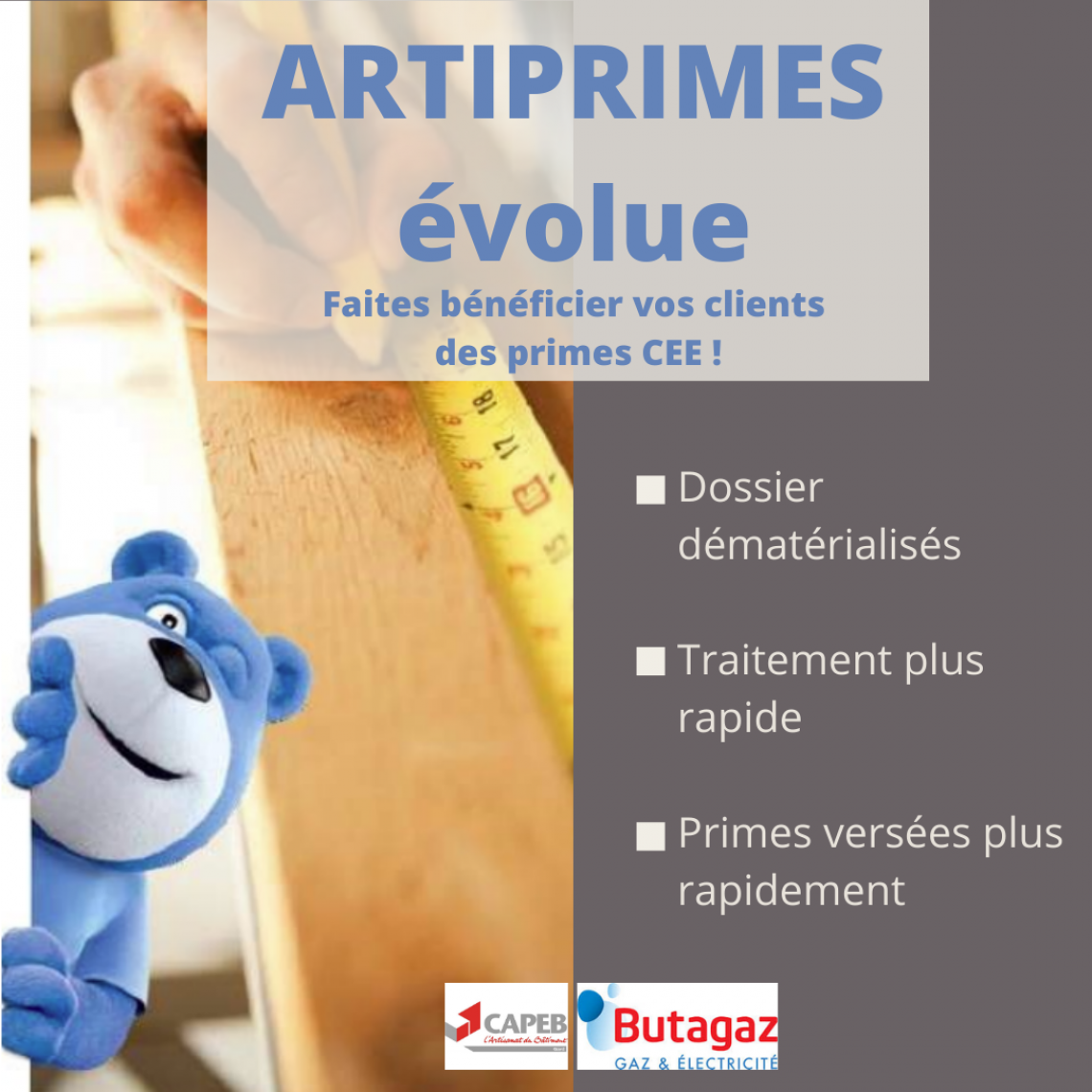 Les Artiprimes sont liées aux Certificats d’Economies d’Energie, un dispositif gouvernemental inscrit dans le Code de l’Energie (Titre II du Livre II). Cette réglementation attribue aux fournisseurs d’énergie le rôle de promouvoir des actions d’efficacité énergétique chez les consommateurs. C’est dans ce contexte que Butagaz s’est associé à la CAPEB, pour aider les installateurs en valorisant leurs travaux de rénovation énergétique.