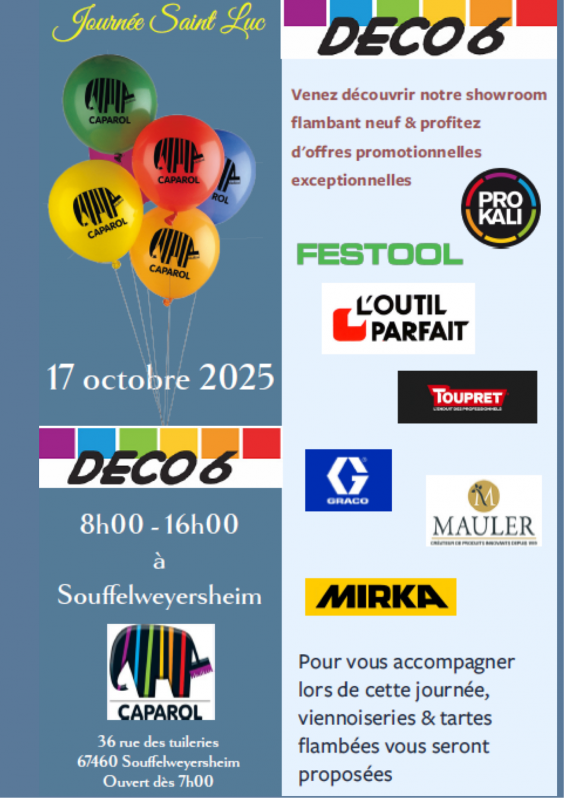 Notre partenaire DECO6 de Souffelweyersheim a le plaisir de vous convier à son évènement annuel : La Saint Luc.