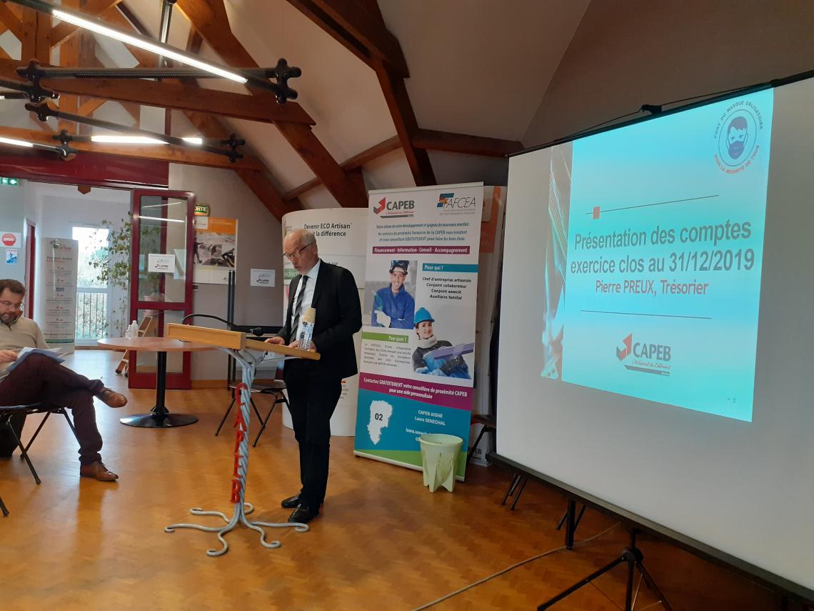 Cette assemblée est revenue sur l’activité 2019 du premier syndicat des artisans du bâtiment. Après les hommages appuyés rendus à Bernard STALTER, ancien président de l’association des chambres de métiers emporté par la COVID en mars dernier, puis Alain GRISET, ancien Président de l’U2P et de la Chambre de métiers régionale des Hauts de France et enfin Patrick LIEBUS, ancien président de la CAPEB Nationale, José FAUCHEUX a présenté ses rapports moral et d’activité. Le Président FAUCHEUX a souligné les nombreux combats pour la défense des intérêts des artisans du bâtiment qui ont rythmé toute l’année 2019 : représentativité, conventions collectives des ouvriers du bâtiment, transition énergétique, aides à la rénovation énergétique, accessibilité, formation, apprentissage, qualifications et labels…mais aussi partenariats et avantages réservés aux adhérents de la CAPEB de l’Aisne ! Le Président FAUCHEUX a ainsi mis en lumière toute l’énergie déployée par la CAPEB pour défendre, conseiller et représenter l’artisanat du bâtiment.