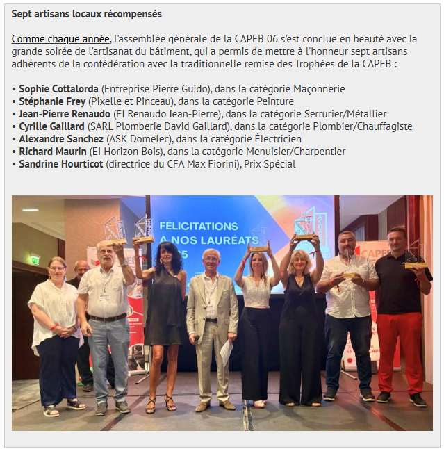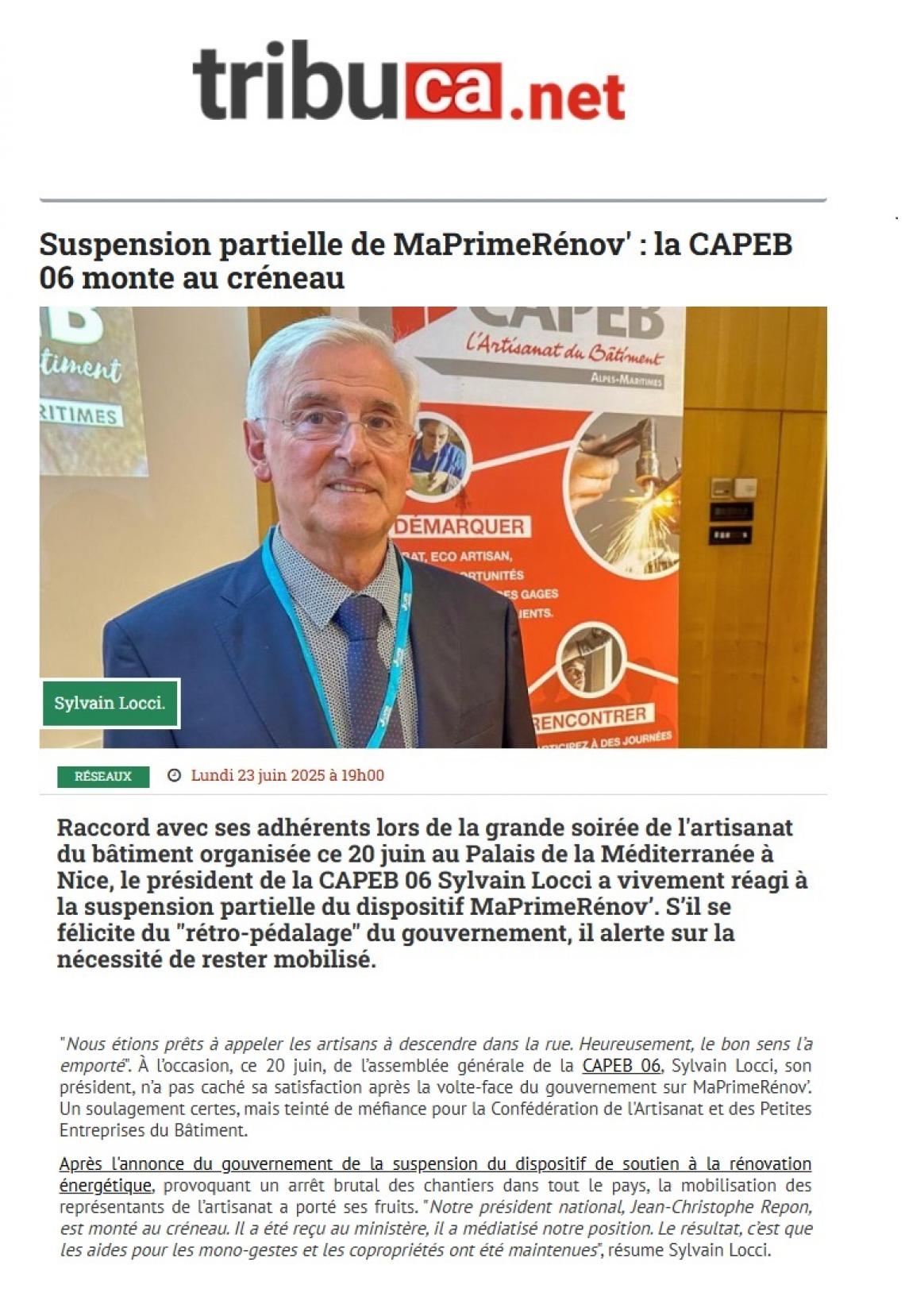 A l'occasion de la Grande Soirée de l'Artisanat du Bâtiment le 20 juin dernier, le Président Sylvain LOCCI a pris position sur les récents revirements du gouvernement au sujet de MA PRIME RENOV'.