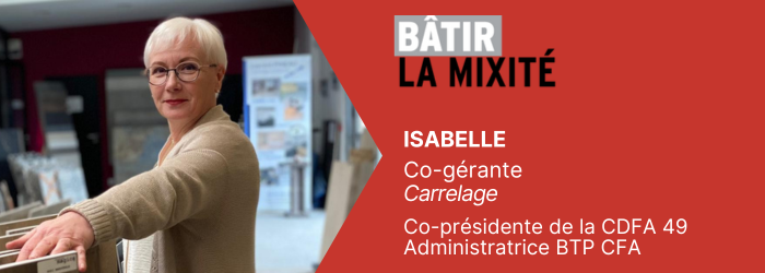 Sincèrement, je ne me suis jamais posée de question. J’ai grandi dans la cour de l’entreprise de mon père parmi les couvreurs et les étancheurs et à 27 ans, je reprenais avec mon mari l’entreprise de carrelage de mon beau-père. Alors le bâtiment environnement d’hommes, oui sans doute, mais c’est le mien aussi et j’y suis à ma place !