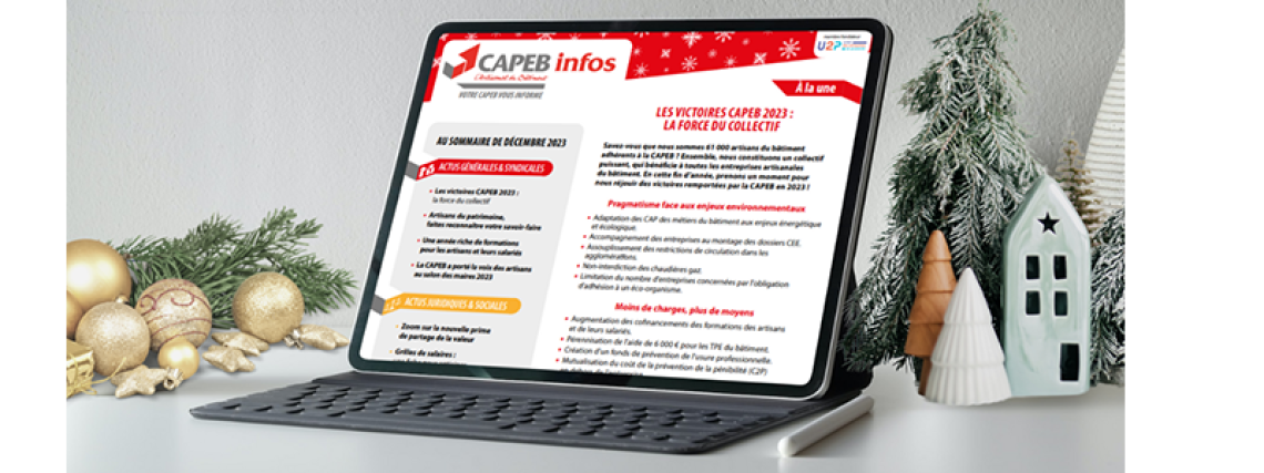 A la une de cette édition, les victoires CAPEB 2023 : la force du collectif. Retrouvez aussi, toute l'actualité syndicale, juridique et sociale, les infos aides aux travaux et métiers, ainsi que l'agenda des formations. Bonne lecture