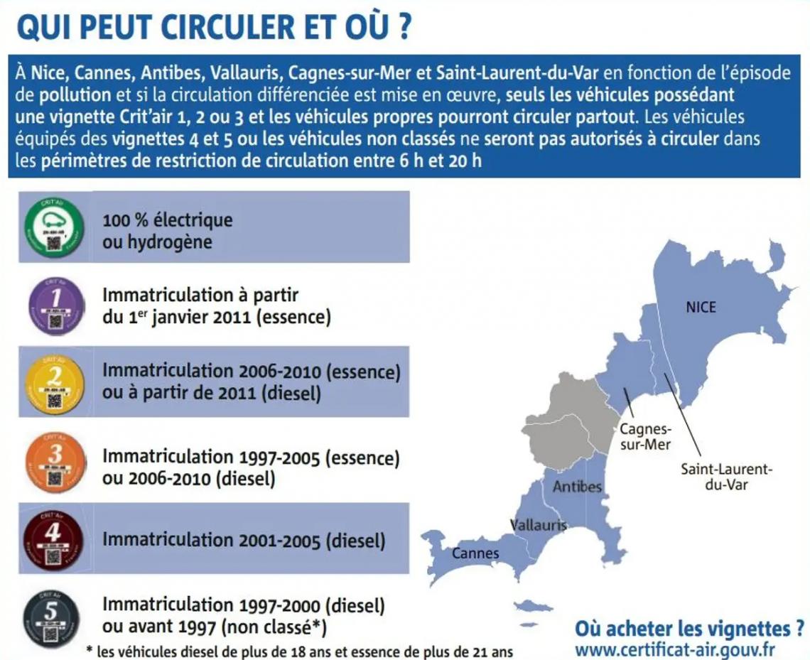 Vous l'avez sans doute lu, vu ou entendu dans la presse ces derniers jours, la vignette Crit'Air est désormais mise en place dans 6 communes des Alpes-Maritimes. Ainsi les villes de Nice, Cannes, Antibes, Vallauris, Cagnes-sur-Mer et Saint-Laurent-du-Var sont concernées par cette mesure et le Préfet des Alpes-Maritimes pourra la mettre en application dès le prochain épisode de pollution de niveau 2.