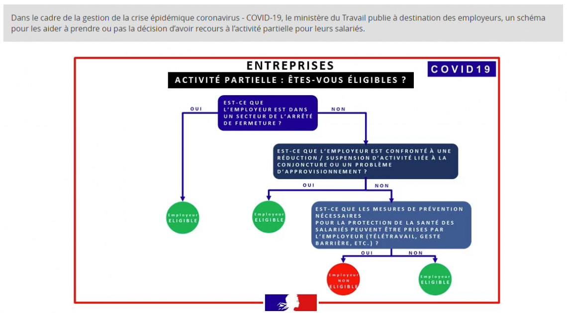 Voir ici la procédure, la conduite à tenir vis-à-vis des salariés, les allocations prévues, etc (mis à jour au 25 mars 2020).