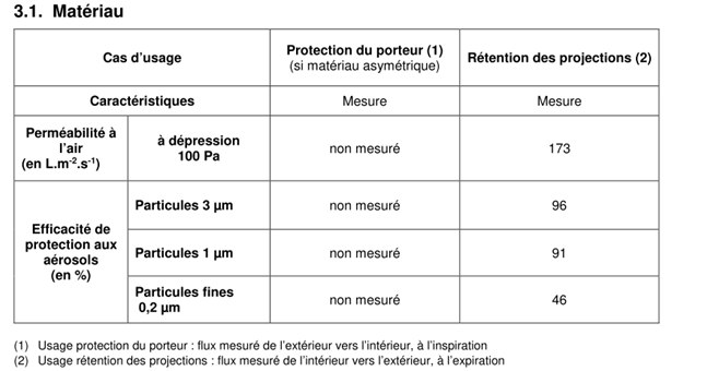 Ces masques UNS vont bien au delà de la filtration recommandé par la DGA. La plus part lavables ne filtrent pas les bactéries et virus. Cela implique donc qu'ils ne protègent pas ou très peu le porteur du masque.