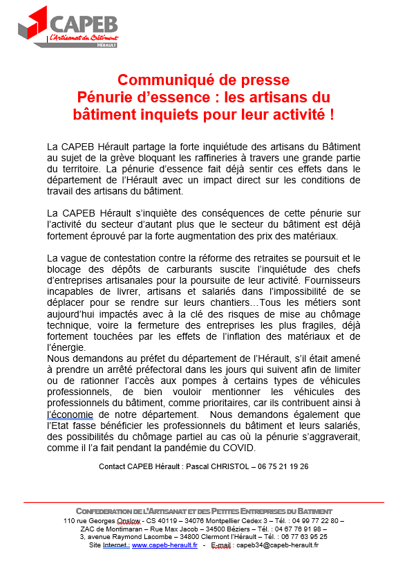 Communiqué de presse sur la pénurie d'essence qui touche le territoire !