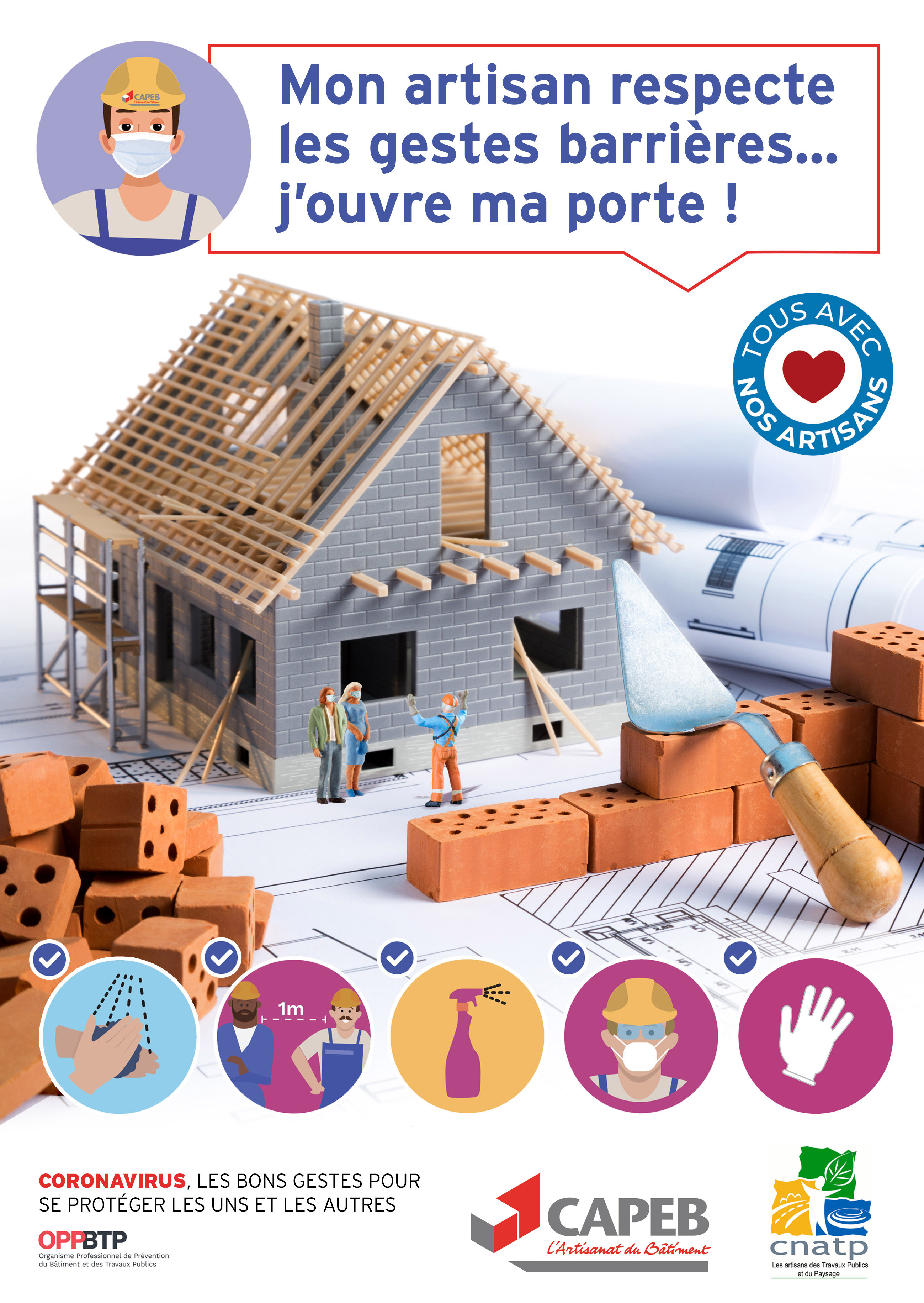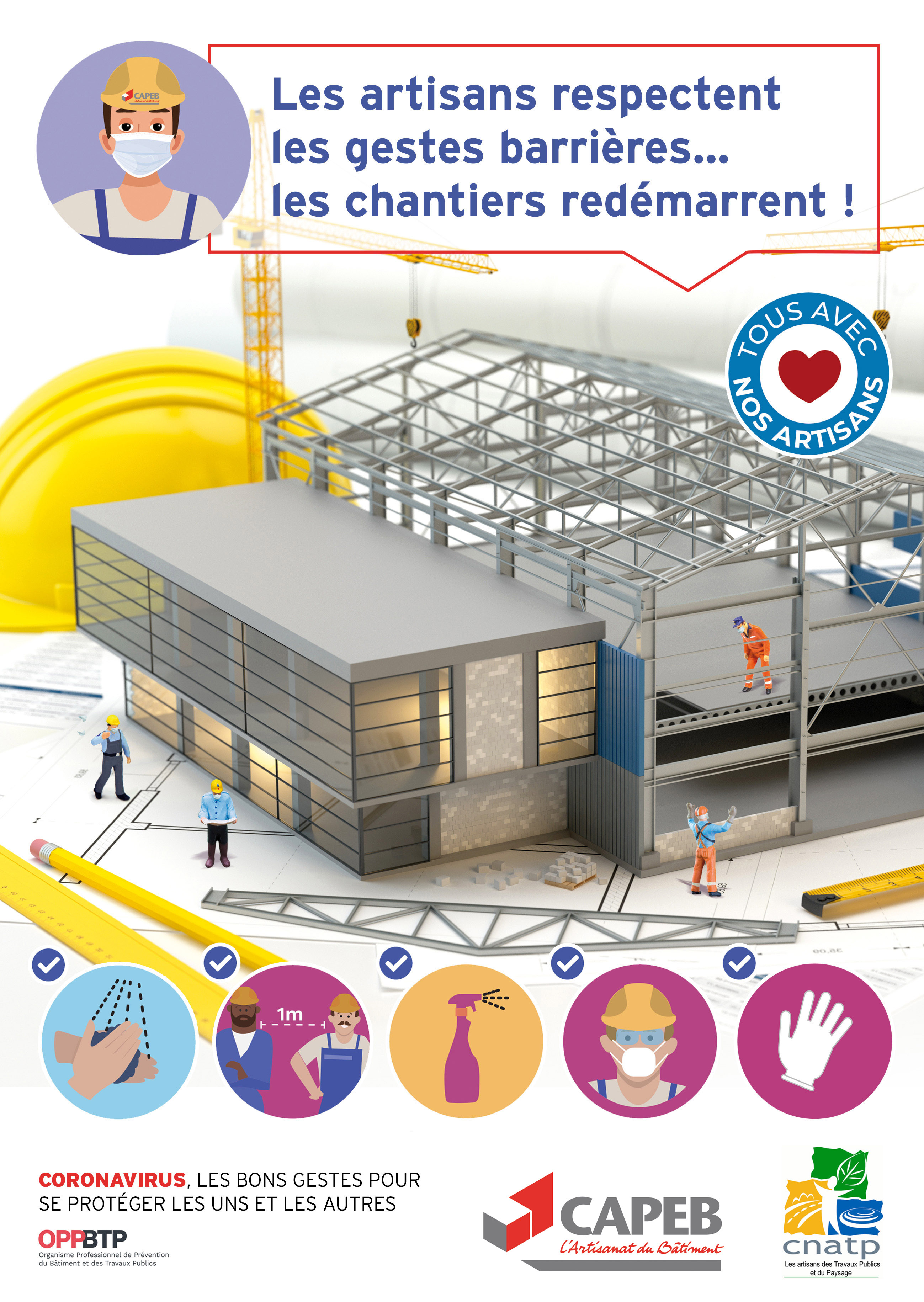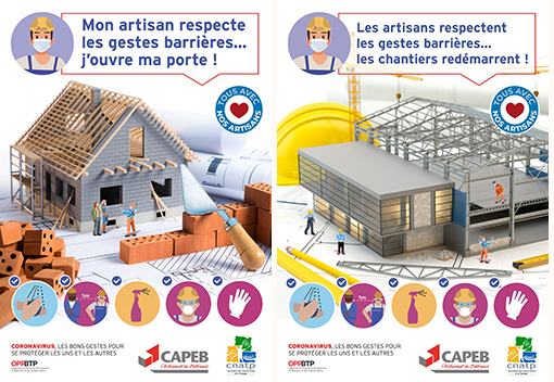 Faites savoir à vos clients que les chantiers redémarrent et que vous respectez les gestes barrières grâce à 2 visuels. Vous pouvez les afficher sur vos camions ou les poster sur vos réseaux sociaux.