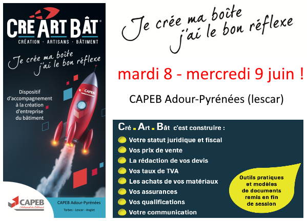 La CAPEB, organisation professionnelle représentative du bâtiment propose donc le seul accompagnement créateur spécifique aux métiers du bâtiment CréArtBât®.