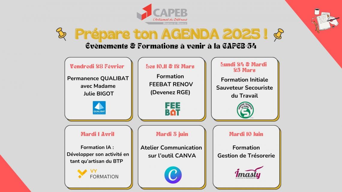 Découvrez tous les évènements et formations qui auront lieu à la CAPEB-54 !