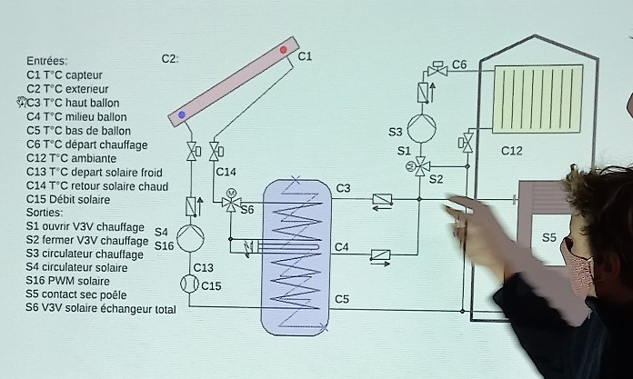 La clef du dispositif réside dans la programmation du logiciel de gestion / régulation de l'installation. Sur ce point, les 3 associés, ingénieurs de formation, ont créé une solution qu'ils proposent en libre de droit, permettant à chaque installateur chauffagiste de se réapproprier les sources, les dupliquer, les améliorer et d'en faire partager ses collègues. Le schéma hydraulique ainsi que la programmation seront donc téléchargeables sur le site internet de l'entreprise.