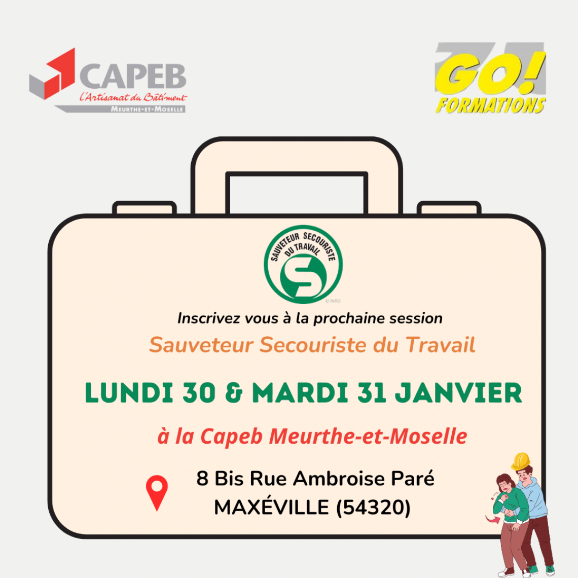 Formation les 30 et 31 janvier : 8 Bis Rue Ambroise Paré, à la CAPEB Meurthe-et-Moselle