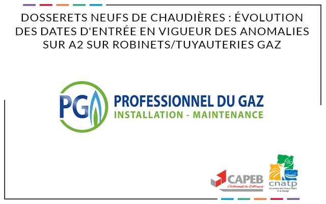 Dosserets neufs de chaudières : évolution des dates d'entrée en vigueur des anomalies sur A2 sur robinets/tuyauteries gaz