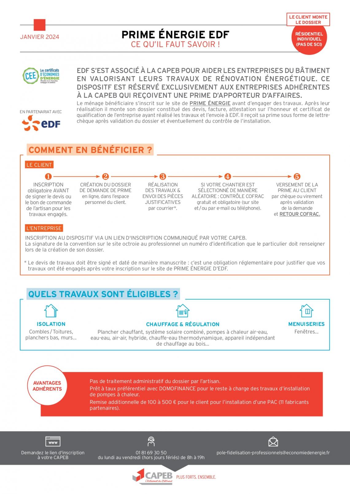 == L’entreprise artisanale RGE se connecte à Prime Energie EDF-CAPEB et crée son compte personnel. (demandez le lien à la CAPEB du Tarn) À l’issue de son inscription, un code partenaire personnel est généré. L’entreprise RGE fournit ce code à son client à la présentation du devis.