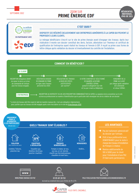 EDF Dispositif CEE Primes Energie - Tous les avantages des dispositifs CEE CAPEB