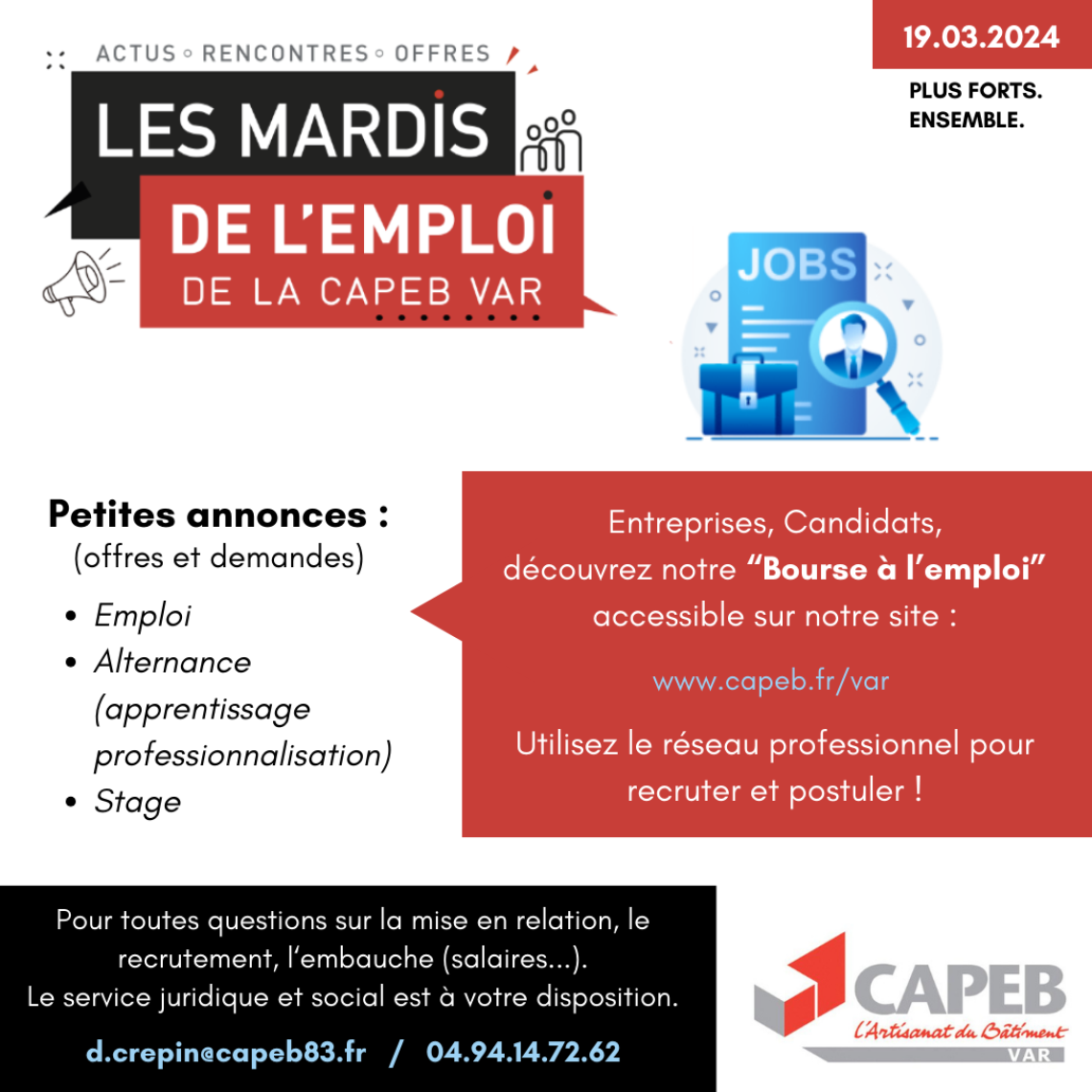 2024-03-19 16:42:36 Entreprises, candidats, découvrez notre "Bourse à l'emploi" accessible sur notre site https://www.capeb.fr/nos-services/je-gere-mon-entreprise