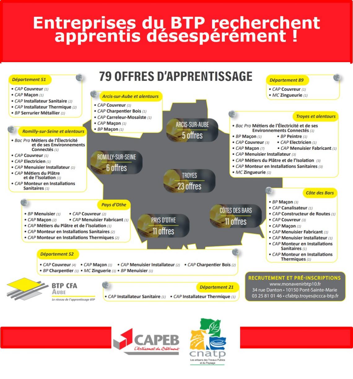 Sur le Grand-Est (hors Alsace-Moselle) c’est plus de 500 offres d’apprentissage en souffrance, dont 79 pour le seul CFA-BTP de l’Aube.