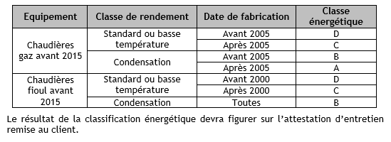 Le professionnel en charge de l’entretien de la chaudière doit désormais procéder à sa classification énergétique.