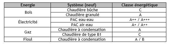 - La chaudière notamment vis-à-vis de sa classe énergétique ;