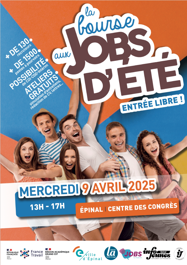 La prochaine édition de la Bourse aux Jobs d’été est programmée mercredi 9 avril 2025 au Centre des congrès d’Epinal (de 13h à 17h).
