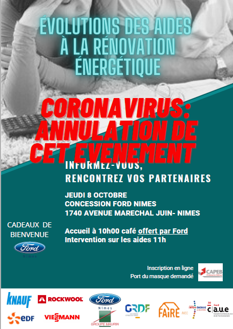 Suite à certaines directives, nous devons annuler cet évènement. Nous tachons de reprogrammer au plus vite sous d'autres formats les rencontres avec nos partenaires et l'information sur les aides.