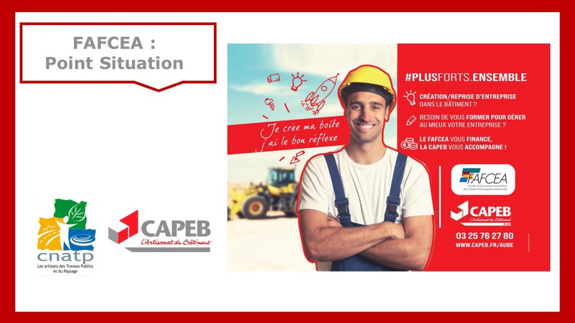 Le Conseil d’administration confédéral, informé de la situation, a décidé de solliciter l’U2P afin d’entreprendre les démarches permettant de doter le FAFCEA des moyens nécessaires au financement de l’ensemble des formations éligibles et d’alléger ses procédures de prise en charge.