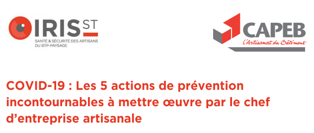 Ici la version des“5 actions de prévention incontournables à mettre en oeuvre par le chef d’entreprise artisanale” du 7 avril.