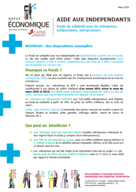 NOUVEAU : Fonds de solidarité, des dispositions assouplies
