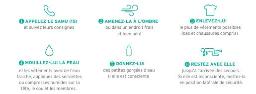 - SE TENIR À L’OMBRE et éviter de s’exposer durant les heures les plus chaudes