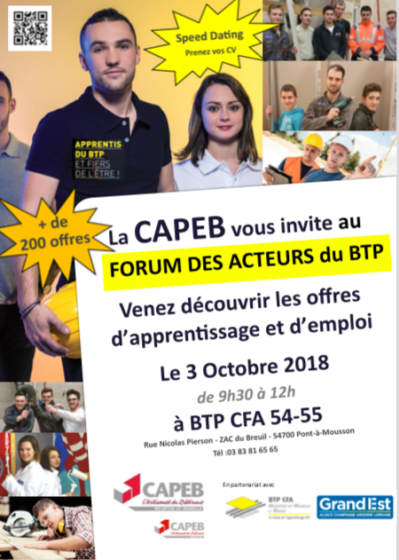 Artisans du Bâtiment, Maîtres d'Apprentissage du BTP, n'hésitez pas à participer le 3 octobre prochain aux recrutements de vos futurs Apprentis !
