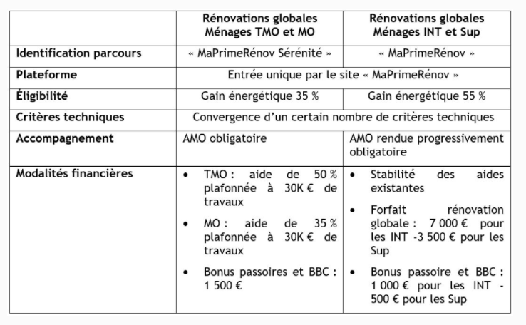Maintien du dispositif actuel permettant une rénovation par gestes pour tous les ménages confondus ou une rénovation globale pour les ménages intermédiaires ou supérieurs