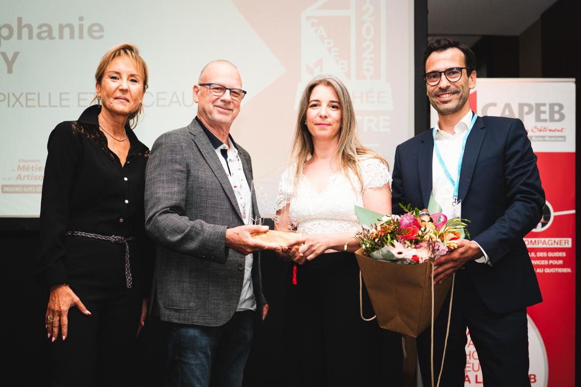 Stéphanie FREY (SARL PIXELLE ET PINCEAU à Nice). Engagée et dynamique. Impliquée au sein de la Commission des Femmes de l’Artisanat du bâtiment, Stéphanie FREY rejoint également cette année le Conseil d’Administration de la CAPEB06.