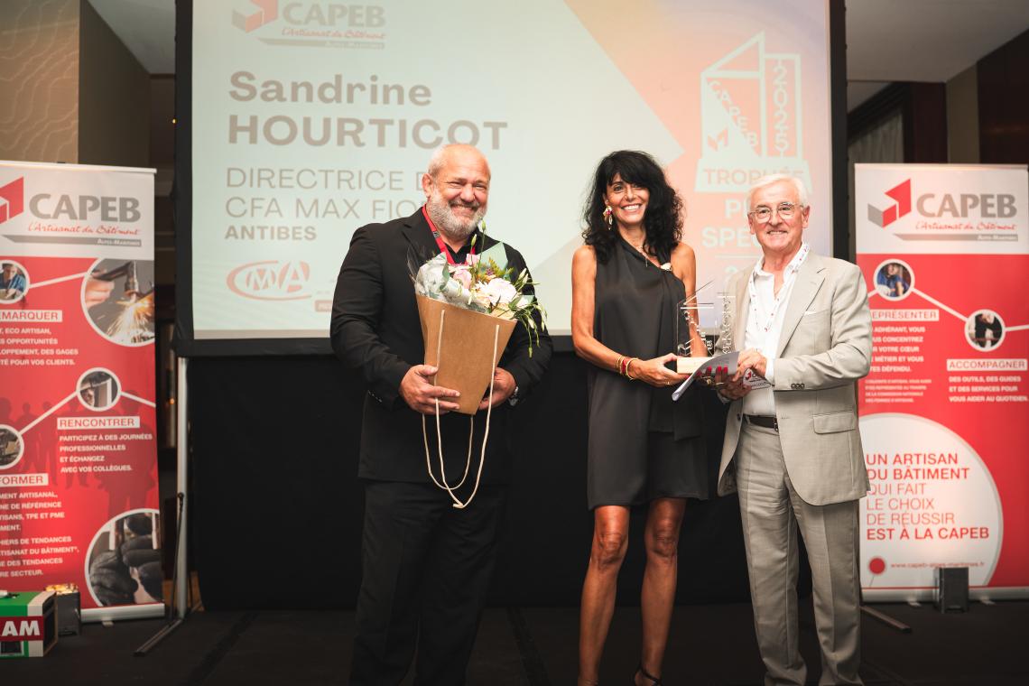 Sandrine HOURTICOT, directrice du CFA du Bâtiment Max FIORINI à Antibes. Depuis2010, elle a traversé avec brio, toutes les grandes transformations subies parle CFA (de la régionalisation à la réforme de la formation professionnelle)et permis au CFA Max FIORINI de demeurer le fleuron des CFA de la région.