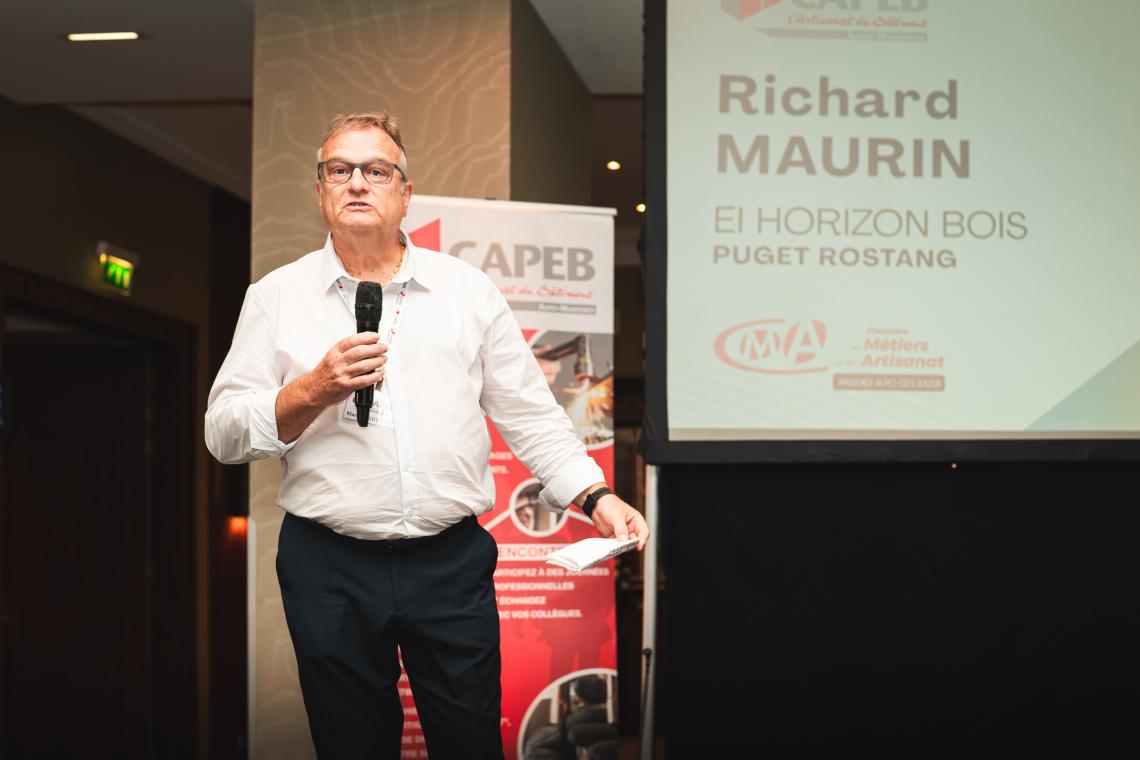 Richard MAURIN (charpenterie HORIZON BOIS à Puget-Rostang), qui n’a pas formé moins que 16 apprentis et 8 contrats de professionnalisation (sans parler des innombrables compagnon du devoir qu’il a pu accueillir). Très impliqué dans sa vallée, il n’a pas pu être présent ce soir-là. Le trophée fut donc temporairement remis à Eric FERRER. La CAPEB06 le remettra à Richard MAURIN à l’occasion de la Foire Agricole de Puget-Théniers au mois d’octobre.